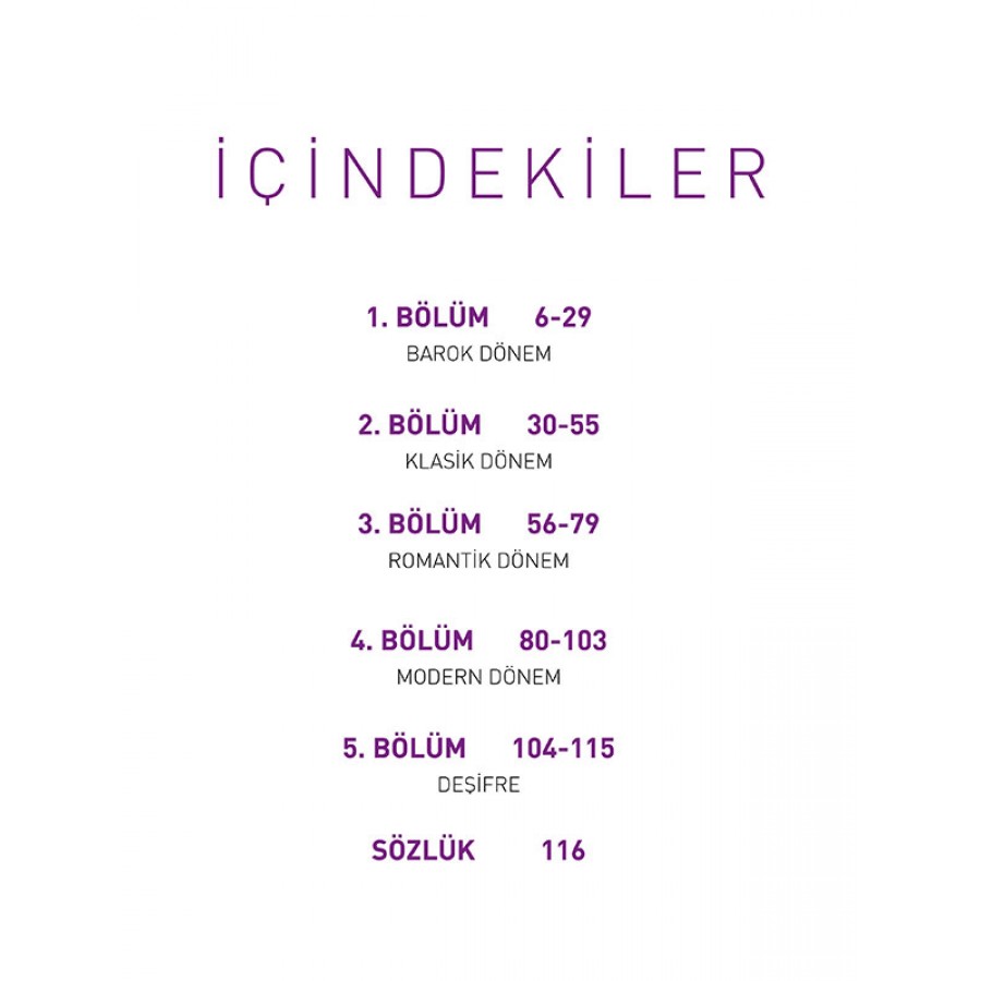 Kitabın içeriği, müzik tarihinin dönemlerine ait örnekler ve deşifre örneklerinden oluşmaktadır.