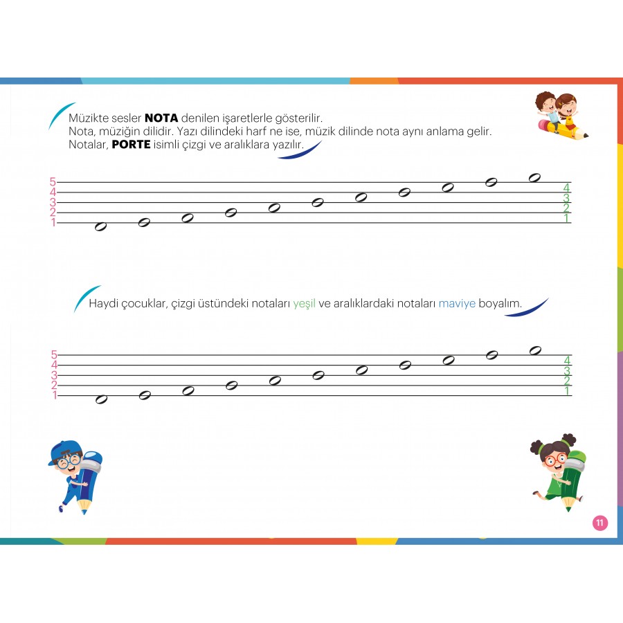 Bu kitabı çalışmaya başlayan minikler, tek tek notaları zorlanmadan öğrenirken, aynı zamanda, notaları anlatan şarkılarla eğlenceli zaman geçirecekler.